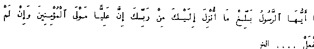 Readers are referred to the article entitled "Shi'ah Additions to the Koran," by the Rev. Mr. W. St. Clair Tisdall, in the July, 1913, issue of The Muslim World. There they will find, in facsimile, the text of Surah al-Walayat (sic), a surah of Shi'a origin. The article contains an English rendering of that surah as well as of a longer surah, also of Shi'a origin, namely, Surah al-Nurayn. The facsimile mentioned, as well as the texts from which the translations are based, is taken from a manuscript of the Bankipur Library in India. The article contains English translations of numerous other Shi'a additions to the Qur'an found in the Bankipur manuscript.
