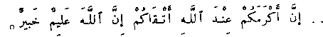Verily the most honourable of you in the sight of God is the most pious among you; verily, God is knowing, aware!