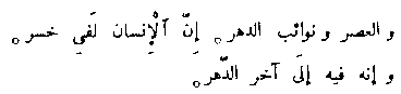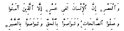 The only other interesting variant in 'Ali's Codex is a different reading of Surah al-'Asr (No. 103). The 'Uthmanic reading is this: