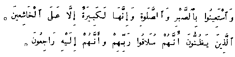 Seek aid with patience and prayer, though it is a hard thing save for the humble, who think that they will meet their Lord, and that to him will they return.