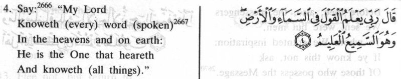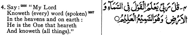 Again, Yusuf Ali's first statement in his note 2666 on 21:4 was: