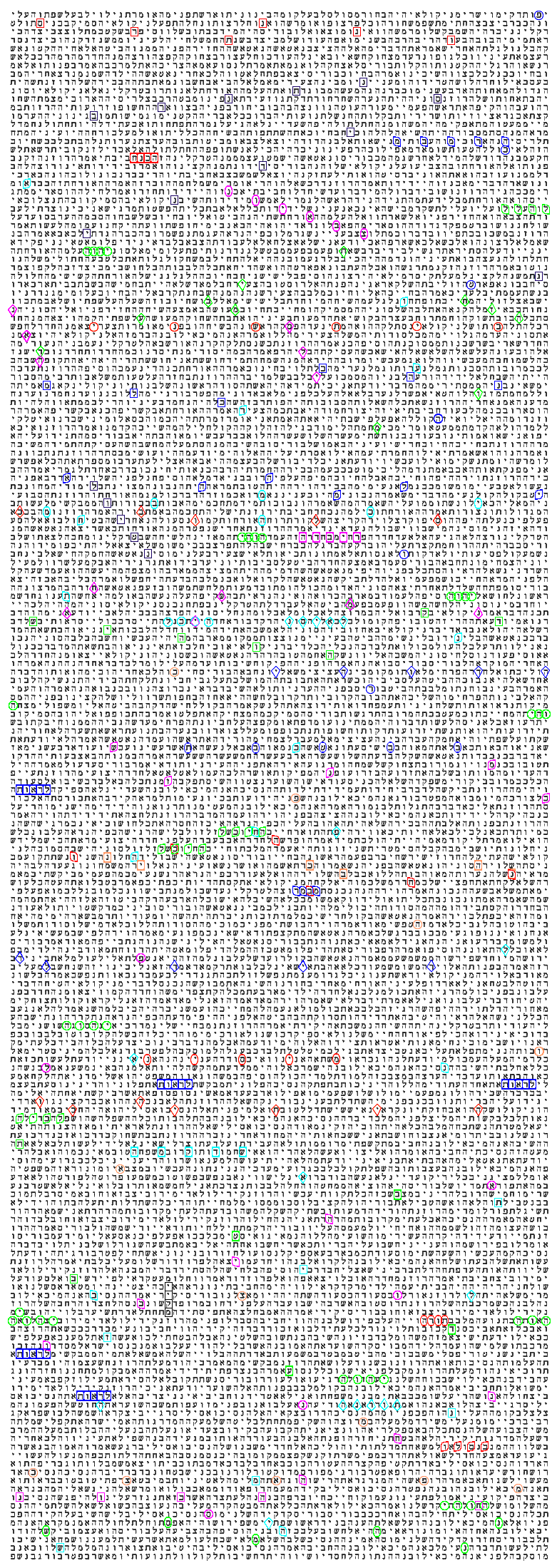 In the table below, you can find the words encoded into War and Peace and the symbol by which the letters have been marked. To see War and Peace with the pattern displayed, click on the table if you dare!