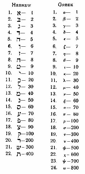 Hebrew and Greek letter values