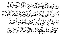 "...Isai, biri i Merjemes tha: “O beni israilë, unë jam i dërguar i All-llahut te ju, jam vërtetues i Tevratit që ishte para meje dhe jam përgëzues për një të dërguar që do të vijë pas meje, emri i të cilit është Ahmed..."