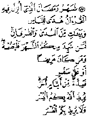 "Muaji i Ramadanit që në te (filloi të) shpallet Kur’ani, është udhërrëfyes për njerëz dhe sqarues i rrugës së drejtë dhe dallues (i të vërtetës nga gënjeshtra). E kush e përjeton prej jush këtë muaj le të agjërojë"