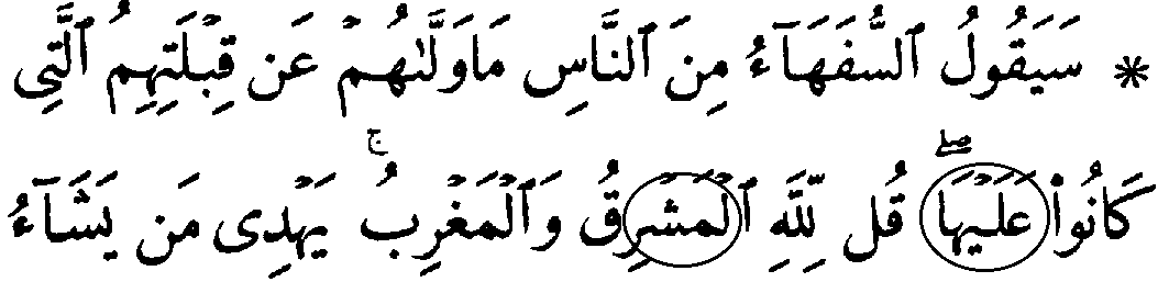 சமர்கண்ட் MSSவுடன் இன்றைய குர்ஆன் (எகிப்து 1924) ஒப்பீடு பின் இணைப்பு A - பாகம் 1 பின் இணைப்பு A: சமர்கண்ட் MSS VS 1924 எகிப்திய வெளியீடு பின் இணைப்பு: A பக்கம் #50 -முதல் வரியில், மூல குர்ஆனின் 2:142ம் வசனத்தை, நம்முடைய தற்போதைய குர்ஆனோடு ஒப்பிடும் போது இரண்டு இடங்களில் வேறுபடுகிறது. [சதுர குறியீடு, விடுபட்ட பகுதியை காட்டுகிறது.]