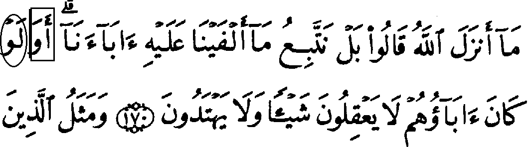 பக்கம் #62: -இரண்டாவது வரியில், மூல குர்ஆனில் 2:170 வசனத்தில் "வாவ்" என்று வந்திருக்கிறது, ஆனால், இப்போது நம்மிடமுள்ள குர்ஆன்களின் பதிப்புகளில் "லாம்" என்பதை சேர்த்துள்ளன்ர்.
