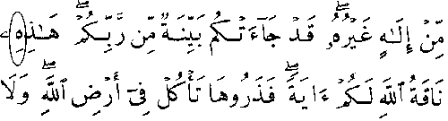 - முதல் வரியில் 'மூல' குர்ஆனில் 7:73ம் வசனத்தில் "லாம் அலீஃப்" என்ற இரண்டு எழுத்துக்கள் உள்ளது, ஆனால், பிறகு யாரோ ஒரு நபர் "லாம்" என்ற எழுத்தின் மீது ஒரு கோடு போட்டுள்ளார், அதனால், தற்கால குர்ஆன்களில் அவ்வெழுத்து நீக்கப்பட்டுள்ளது.