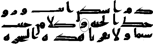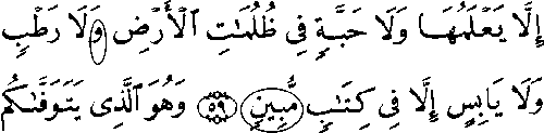 - இரண்டாம் வரியில் 'மூல' குர்ஆனின் 6:59ம் வசனத்தில் ஒரு காம்பு போன்ற எழுந்து இருக்கிறது, ஆனால், தற்கால குர்ஆனில் அது இல்லை.