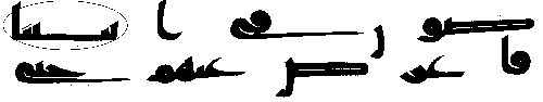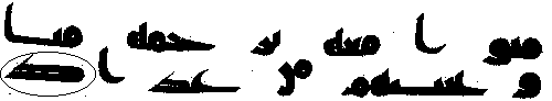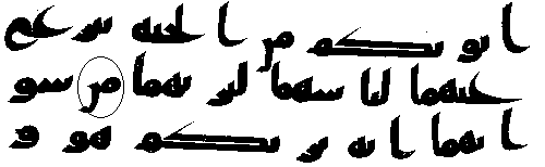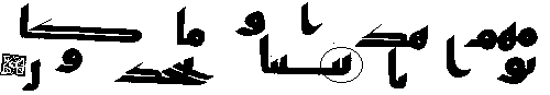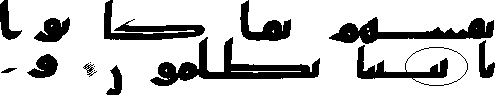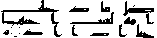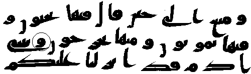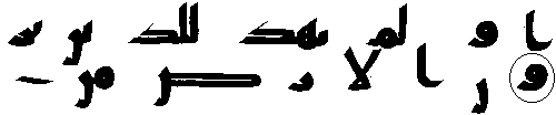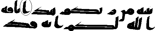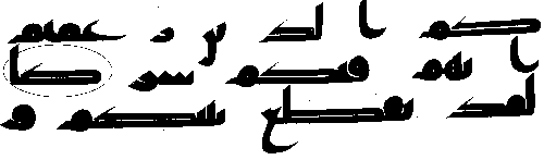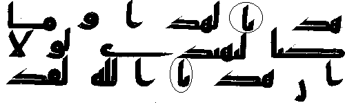 - நான்காம் வரியில் 'மூல' குர்ஆனில் ஒரு காம்பு போன்ற எழுத்து இல்லை, ஆனால் அதே வசனத்தில் தற்கால குர்ஆன்களில் அங்கு "ப (ba)" உள்ளது.