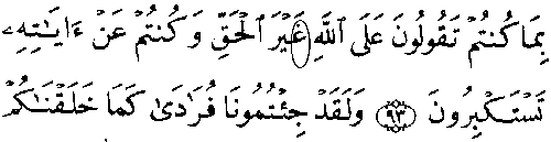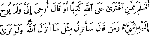 - இரண்டாம் வரியில் 'மூல' குர்ஆனின் 6:93ம் வசனத்தில் "அலீஃப்" என்ற எழுத்து காணப்படுகிறது, ஆனால், தற்கால குர்ஆனில் அது இல்லை.