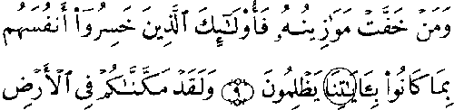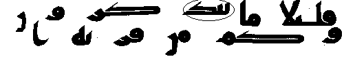 - நான்காம் வரியில் 'மூல' குர்ஆனில் 7:26ம் வசனத்தில் "வாவ்" என்ற எழுத்து உள்ளது, ஆனால் தற்கால அரபிக் குர்ஆனில் அவ்வெழுத்து கொடுக்கப்படவில்லை.