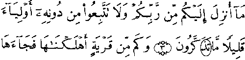- முதல் வரியில் 'மூல' குர்ஆனின் 7:3ம் வசனத்தில் "அதிகபடியான காம்பு போன்ற" உறுப்பு காணப்படுகிறது, ஆனால் தற்கால அரபிக் குர்ஆன்களில் அது இல்லை.
