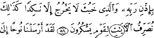 - ஆறாவது வரியில் 'மூல' குர்ஆனில் 7:58ம் வசனத்தில் அதிகபடியான காம்பு உள்ளது, ஆனால் தற்கால அரபிக் குர்ஆனில் அது இல்லை.