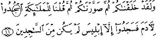 - முதல் வரியில் 'மூல' குர்ஆனில் 7:11ம் வசனத்தில் "ஸாத்" என்ற எழுத்து உள்ளது, ஆனால் தற்கால அரபிக் குர்ஆனில் அதற்கு பதிலாக "ஸீன்" உள்ளது.