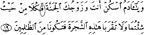 - மூன்றாம் வரியில் 'மூல' குர்ஆனில் 7:19ம் வசனத்தில் "வாவ்" என்ற எழுத்து உள்ளது, ஆனால் தற்கால அரபிக் குர்ஆன்களில் "ஃப" என்ற எழுத்து அடுத்து வரும் வார்த்தையோடு சேர்க்கப்பட்டுள்ளது.