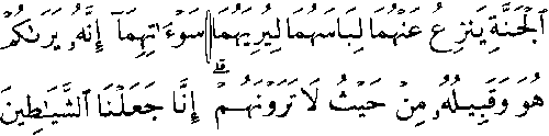 - மூன்றாம் வரியில் 'மூல' குர்ஆனில் 7:27ம் வசனத்தில் "மீம்" மற்றும் "நூன்" என்ற எழுத்து காணப்படுகிறது, ஆனால், தற்கால குர்ஆன்களில் அவ்விரு எழுத்துக்களும் காணப்படவில்லை.