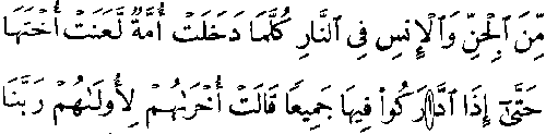 - ஒன்பதாம் வரியில் 'மூல' குர்ஆனில் 7:38ம் வசனத்தில் "அலீஃப்" என்ற எழுத்து காணப்படவில்லை, ஆனால் தற்கால குர்ஆனில் அது காணப்படுகிறது.