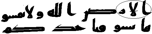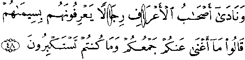 - நான்காவது வரியிலும், ஐந்தாவது வரியிலும் 'மூல' குர்ஆனில் 7:47ம் வசனத்தில் "அலீஃப்" என்ற எழுத்து இல்லை, ஆனால், தற்கால குர்ஆன்களில் அது உள்ளது. வாய்வழி பாரம்பரியத்தின் படி இந்த "அலீஃப்" எழுத்து 'மூல' குர்ஆனில் இருந்ததாக சொல்லப்படுகிறது.