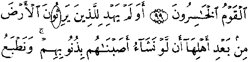 - ஆறாவது வரியில் 'மூல' குர்ஆனில் 7:100ம் வசனத்தில் "வாவ்" என்ற எழுத்து உள்ளது, ஆனால் தற்கால குர்ஆன்களில் "த" மற்றும் "வாவ்" உள்ளது.
