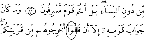 - பன்னிரண்டாம் வரியிலும், அடுத்த பக்கத்தின் முதல் வரியிலும் 'மூல' குர்ஆனில் 7:82ம் வசனத்தில் உள்ள வார்த்தை குறிப்பிடும் அளவிற்கு தற்கால குர்ஆன்களில் மாற்றப்பட்டுள்ளது.