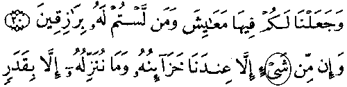 - எட்டாவது வரியில் 'மூல' குர்ஆனில் 15:21ம் வசனத்தில் "அலீஃப்" காணப்படுகிறது, ஆனால் தற்கால குர்ஆனில் அது காணவில்லை.