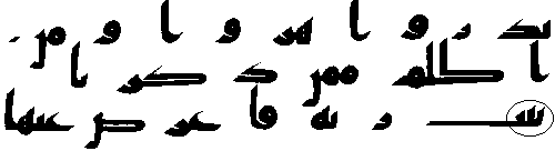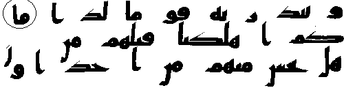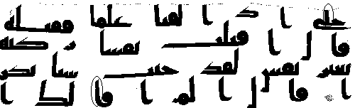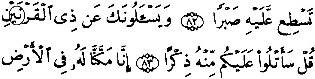 - நான்காம் வரியில் 'மூல' குர்‍ஆனில் 18:83ம் வசனத்தில் "மீம்" உள்ளது, ஆனால் தற்கால அரபி குர்‍ஆன்களில் "நூன்" மற்றும் "" என்ற எழுத்துக்கள் அவ்விடத்தில் காணப்படுகிறது.