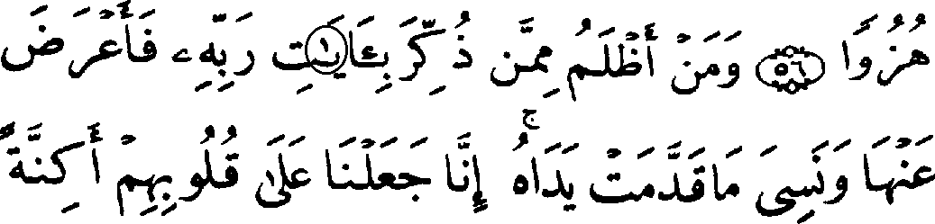 - ஆறாம் வரியில் 'மூல' கு‍ர்‍ஆனில் 18:57ம் வசனத்தில் ஒரு காம்பு போன்ற உறுப்பு காணப்படுகிறது, ஆனால் தற்கால குர்‍ஆன்களில் அந்த காம்பு போன்ற எழுத்து காணப்படுவதில்லை.