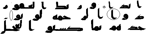- ஐந்தாம் வரியில் 'மூல' குர்‍ஆனில் 26:93ம் வசனத்தில் இரண்டு காம்பு போன்ற உறுப்பு காணப்படுகிறது, ஆனால் தற்கால குர்‍ஆனில் "" உள்ளது.