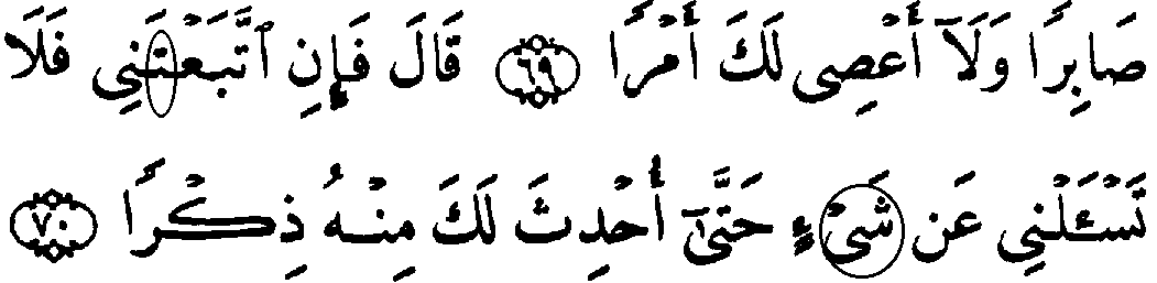- முதல் வரியில் 'மூல' குர்‍ஆனில் 18:70ம் வசனத்தில் "லாம்" என்ற எழுத்து வருகிறது, ஆனால் இதற்கு பதிலாக தற்கால குர்‍ஆனில் "ட (ta) " என்ற எழுத்து காணப்படுகிறது.