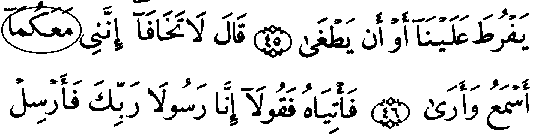 - முதல் வரியில் 'மூல' குர்‍ஆனில் 20:46ம் வசனத்தில் "மீம்" என்ற எழுத்து காணப்படவில்லை, ஆனால் தற்கால குர்‍ஆனில் அது காணப்படுகிறது.
