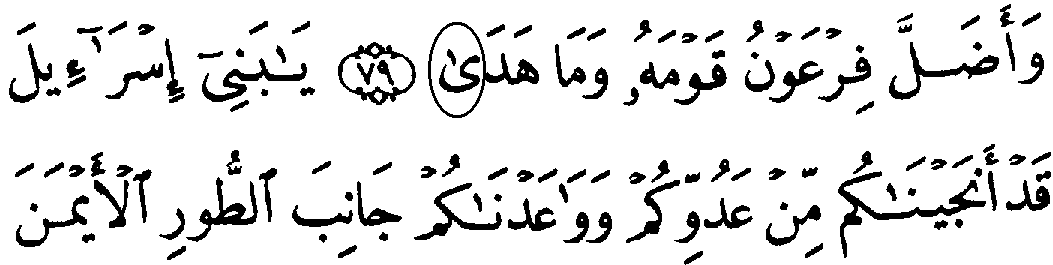 - ஏழாவது வரியில் 'மூல' குர்‍ஆனில் 20:79ம் வசனத்தில் "நூன்" என்ற எழுத்து வருகிறது, தற்கால குர்‍ஆனில் அவ்வெழுத்து "" என்று உள்ளது.