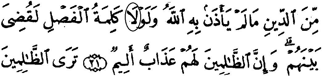 - மூன்றாம் வரியில் 'மூல' குர்‍ஆனில் 42:21ம் வசனத்தில் "லாம் அலீஃப்" என்ற எழுத்துக்கள் பிற்காலத்தில் 'மூல' குர்‍ஆனில் சொறுகப்பட்டுள்ளது, இவ்வெழுத்துக்கள் தற்கால குர்‍ஆனில் காணப்படுகிறது.