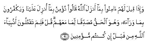 (มุฮัมมัด) ว่า เพราะเหตุใด เมื่อก่อนโน้นพวกท่านจึงฆ่านะบีของอัลลอฮ์