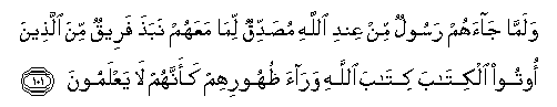 ก็เหวี่ยงคัมภีร์ของอัลลอฮฺไว้เบื้องหลังของพวกเขาเสีย